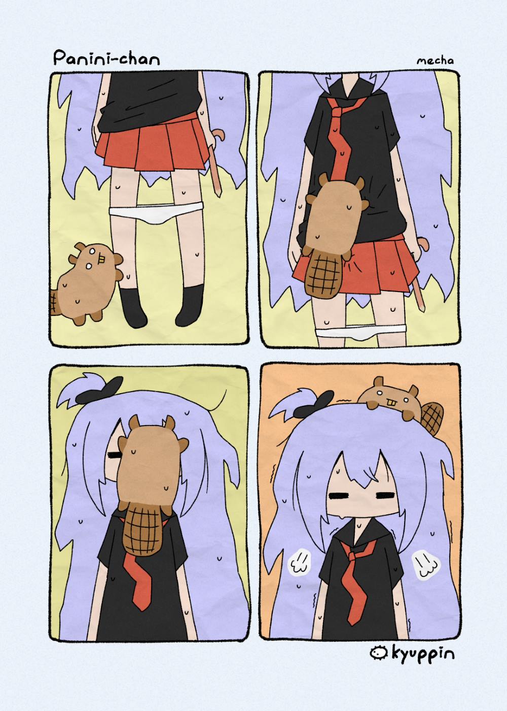 This is a little weekly comic I've been working on since January 2024. Every Sunday I wake up, go to the laundromat, brainstorm ideas, and then come back to my apartment and sketch a new chapter.Panini is a shy 30-something year old girl with high anxiety and very low energy. You may often see her with her underwear around her legs, having run out of the strength needed to pull them up all the way.
